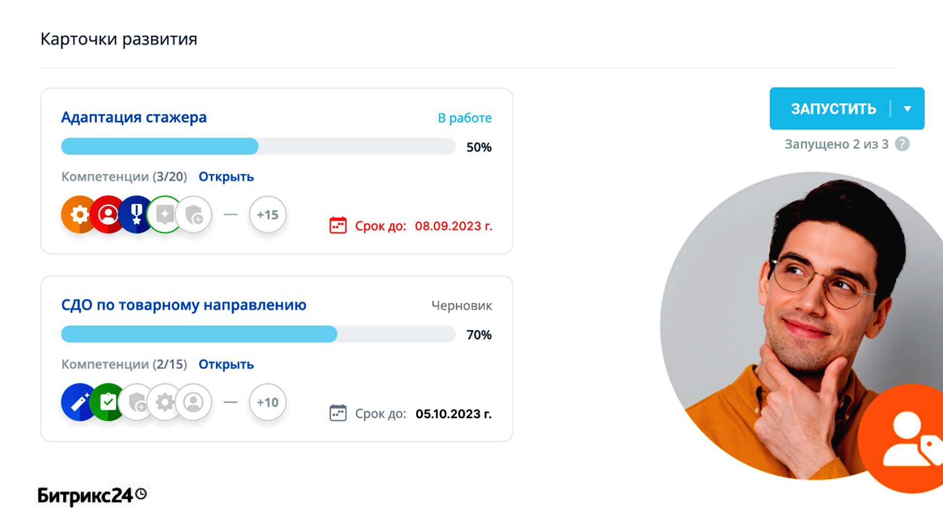 Игровые механики нашей платформы помогут сделать процесс обучения увлекательным и интересным для сотрудников. Они будут поддерживать интерес и мотивацию, помогая проходить курсы до конца. Б24 HR – это не только инструмент для обучения, но и возможность развивать навыки и умения сотрудников, что в свою очередь способствует росту вашей компании.