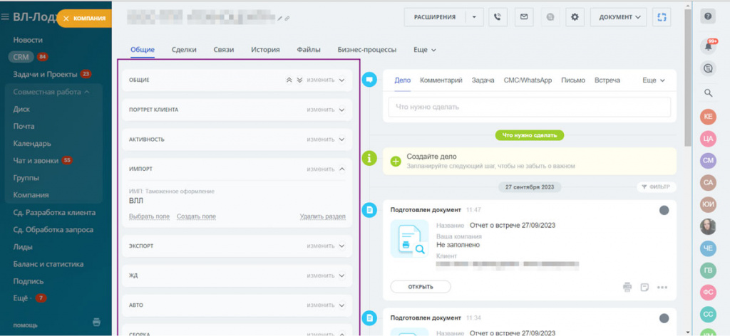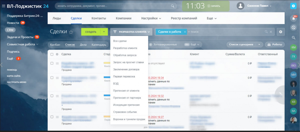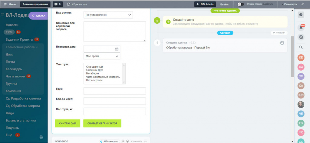 технологий и систем ТЛК «ВЛ Лоджистик»:Технологии не стоят на месте и системы требуют непрерывных улучшений. У нас появилась задача перевести процессы компании из существующей CRM, которая на тот момент не позволяла реализовать все наши задумки, в Битрикс24. В том числе из-за возможности дальнейшего развития системы, как корпоративного портала Компании