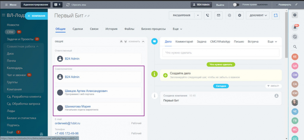 Основным задачами при развертывании и внедрении коробочной версии CRM Битрикс24 стали: