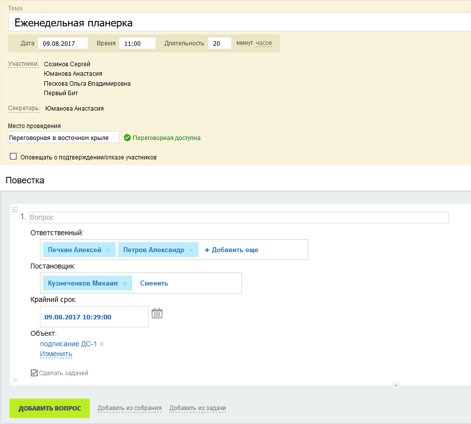 • Усовершенствовать инструмент "планерки", расширив его стандартный функционал.